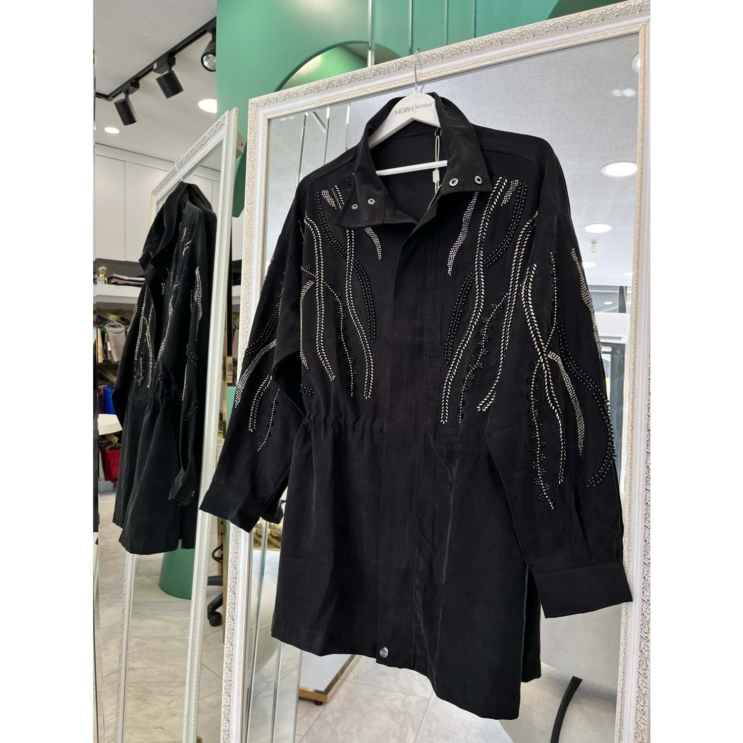 ADN TAŞLI CEKET CUPRA KARIŞIMLI - SİYAH - 4