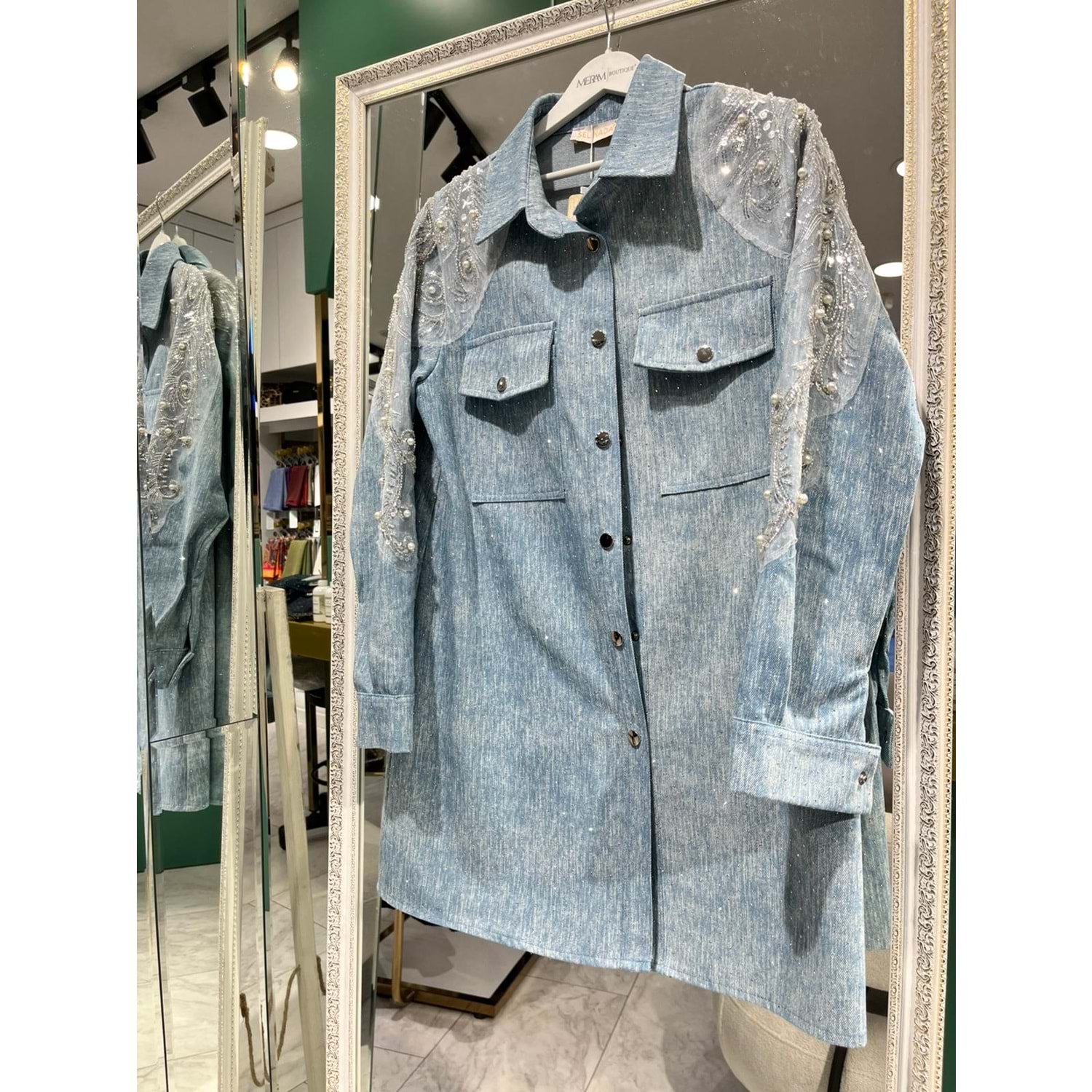 SELİNADA OMUZ İŞLEMELİ KOT CEKET