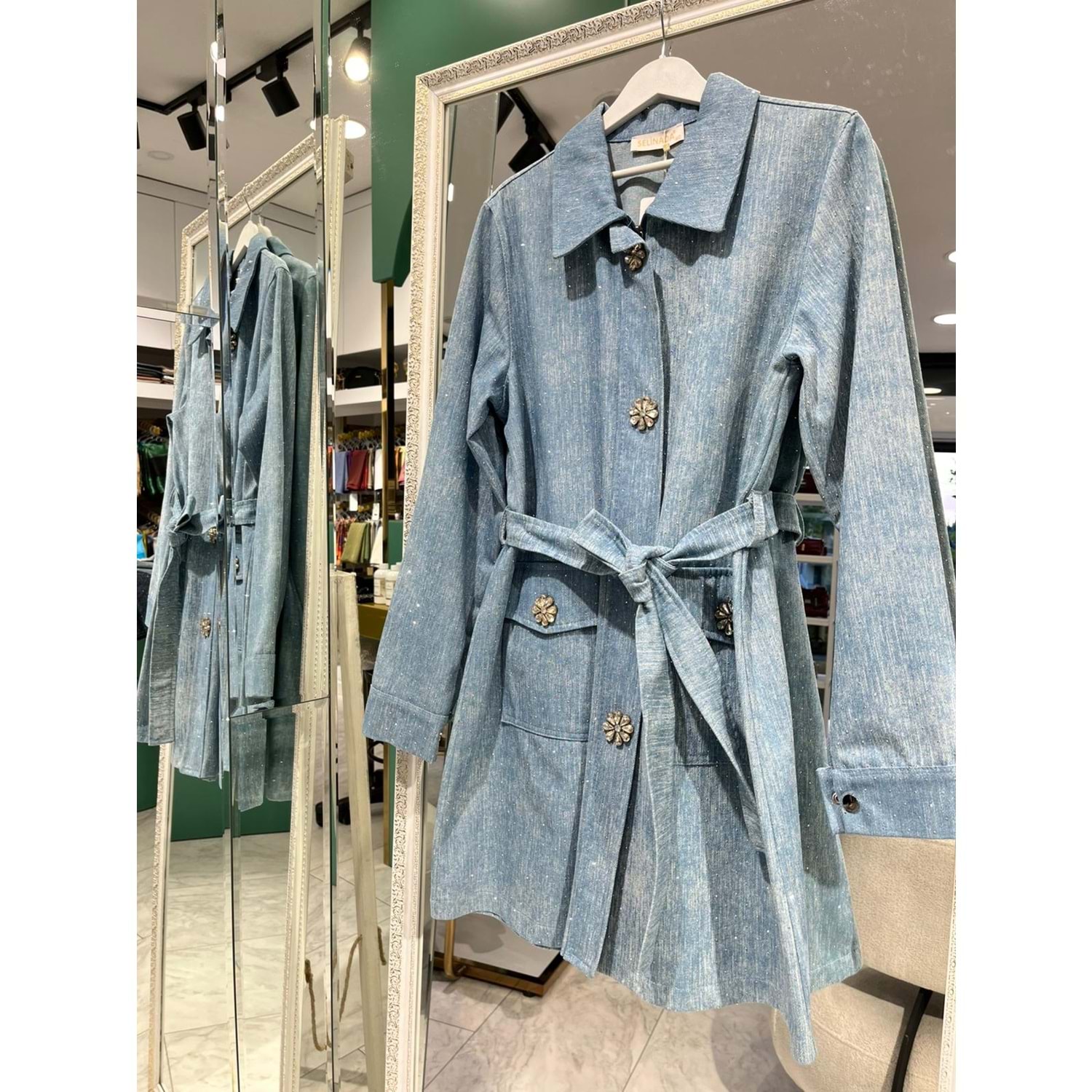 SELİNADA TAŞLI KOT CEKET - AÇIK MAVİ - 42