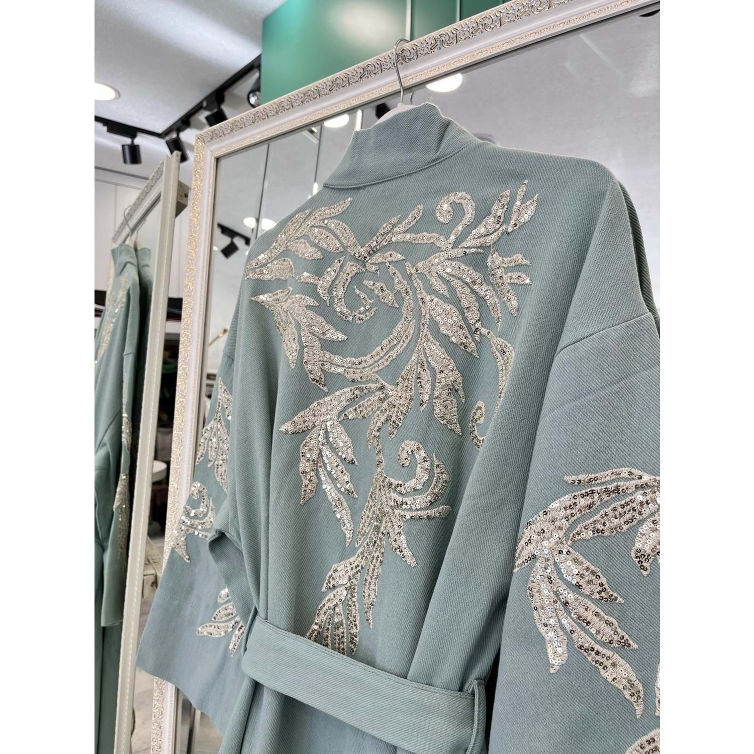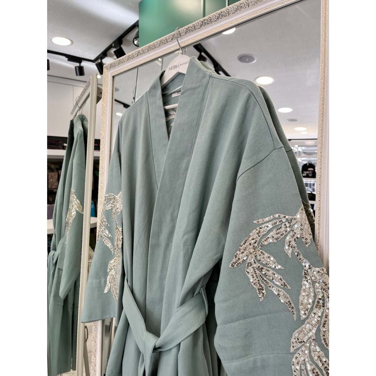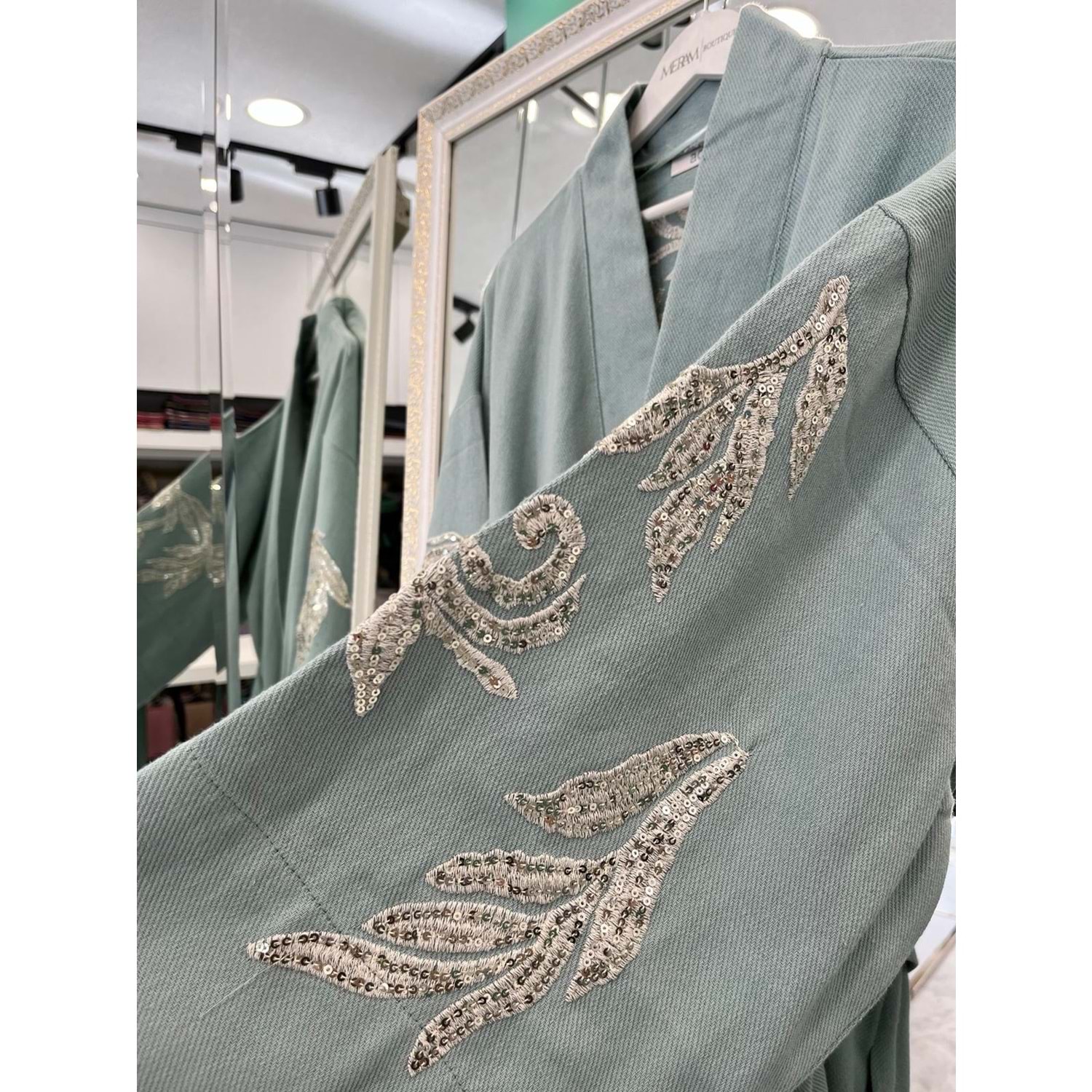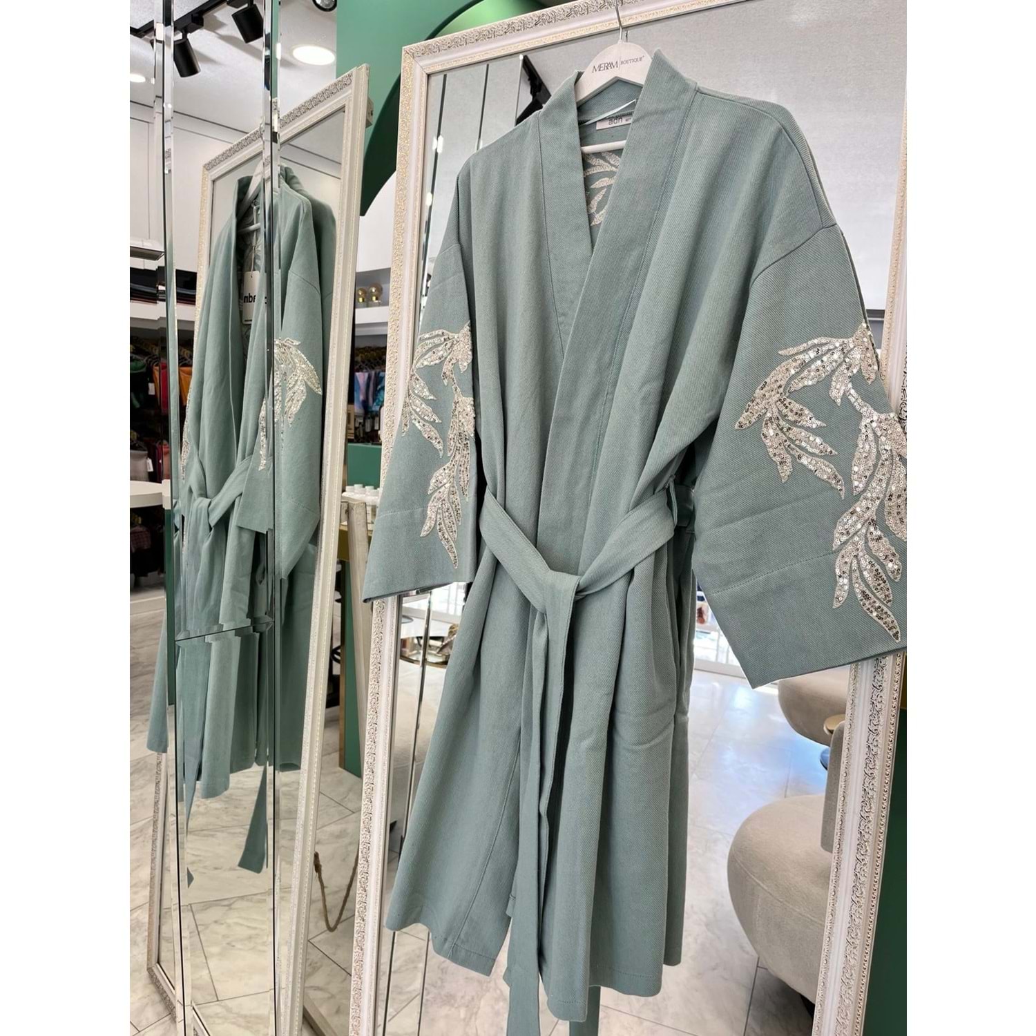 ADN İŞLEMELİ KİMONO PAMUK GABARDİN - MİNT YEŞİLİ - (40-46 BEDEN UYUMLU)