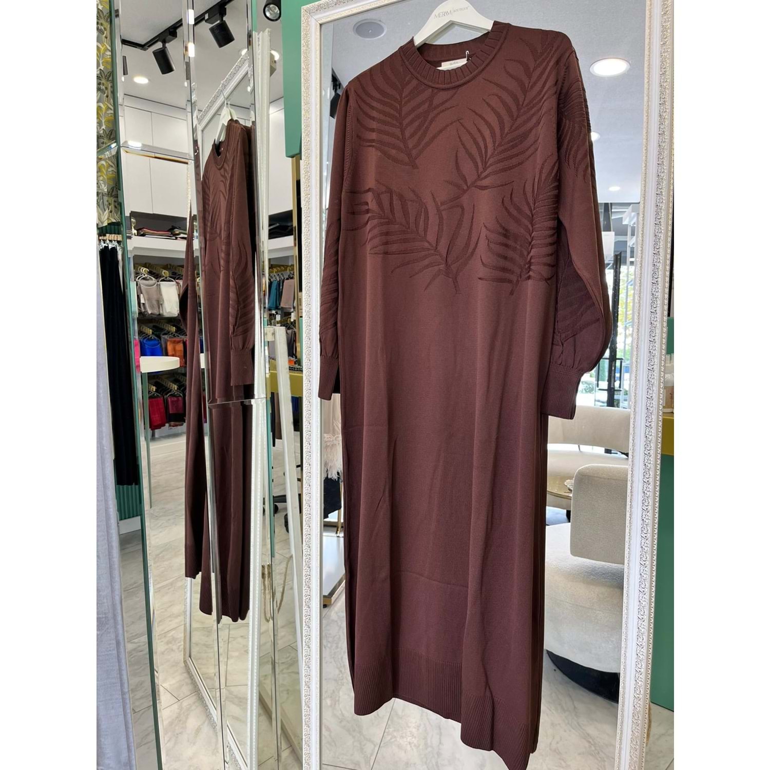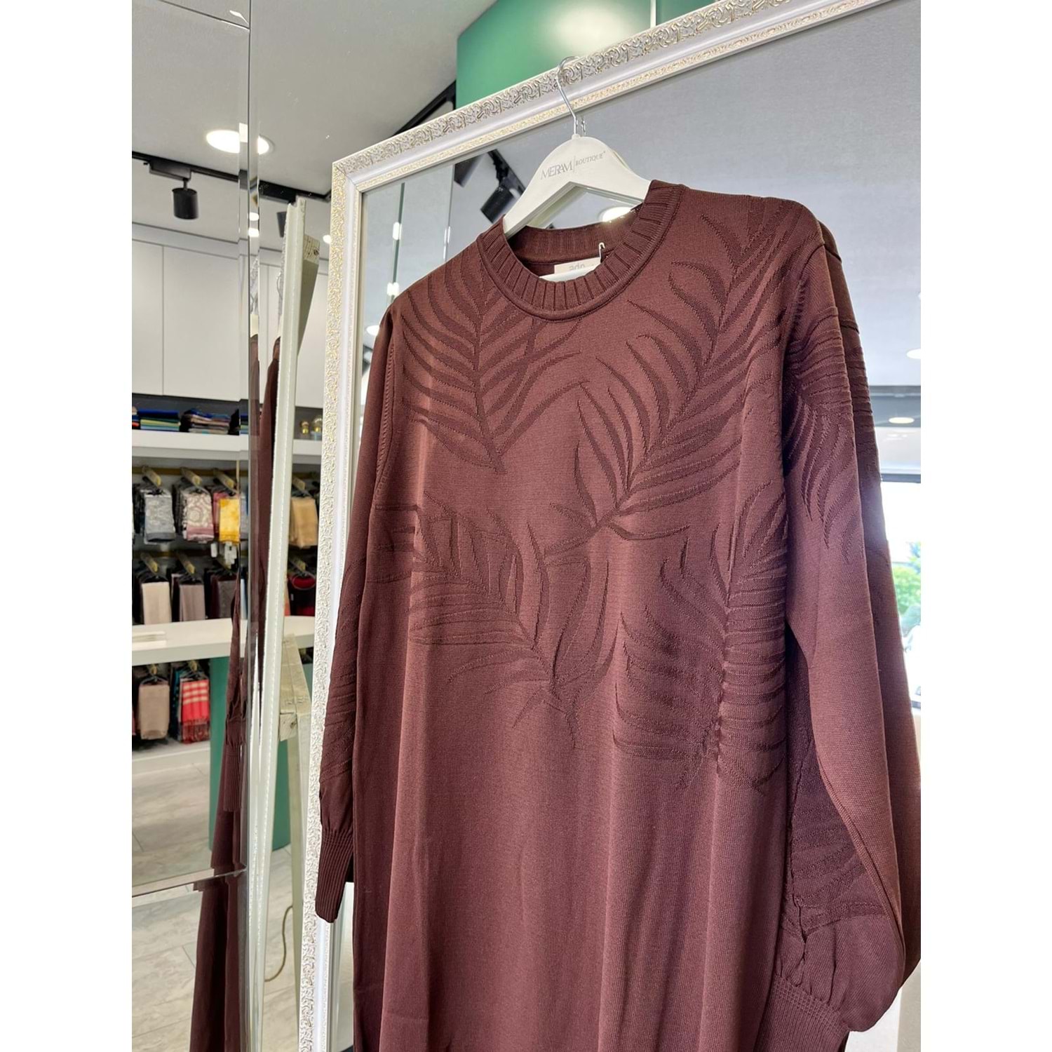 ADN MERSERİZE PALMİYE ELBİSE - ACI KAHVE - 2