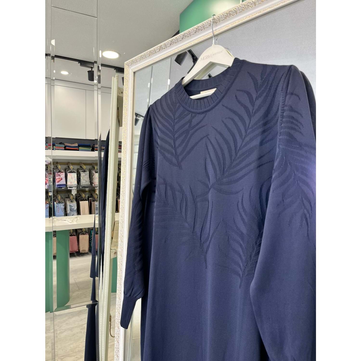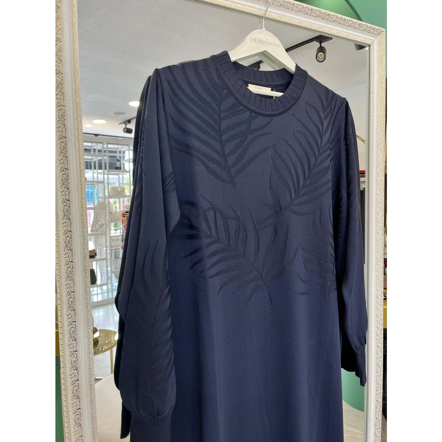ADN MERSERİZE PALMİYE ELBİSE - LACİVERT - 2