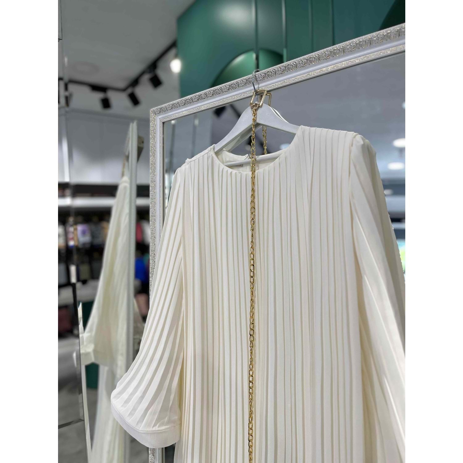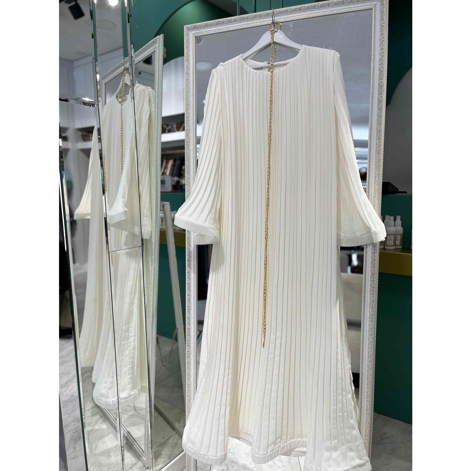 ADN PİLİSELİ ŞİFON ELBİSE - BEYAZ - 2