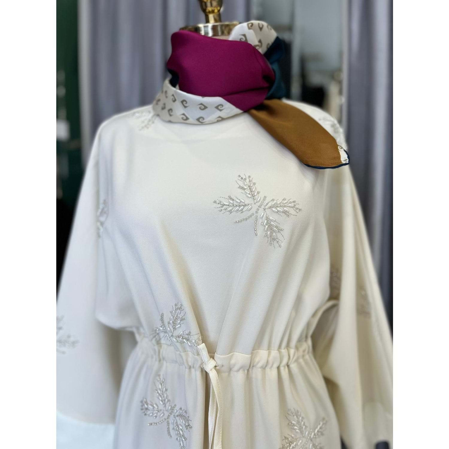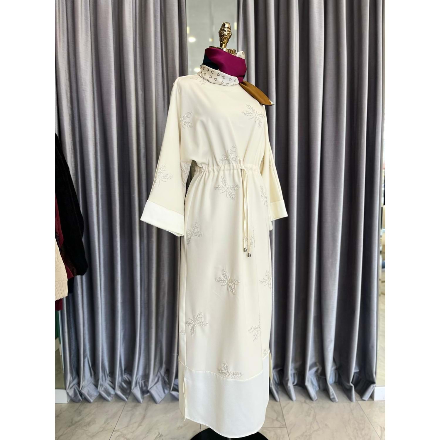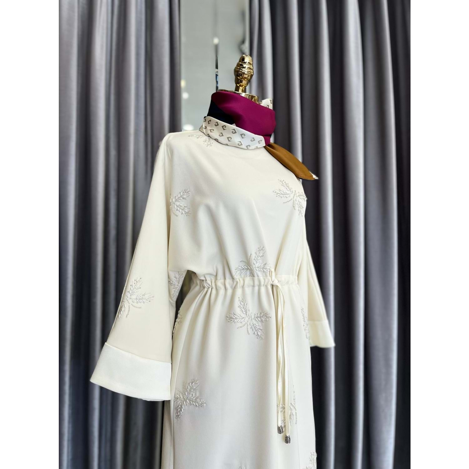 HALE PAPILLION SCUBA ELBİSE - KREM - 2