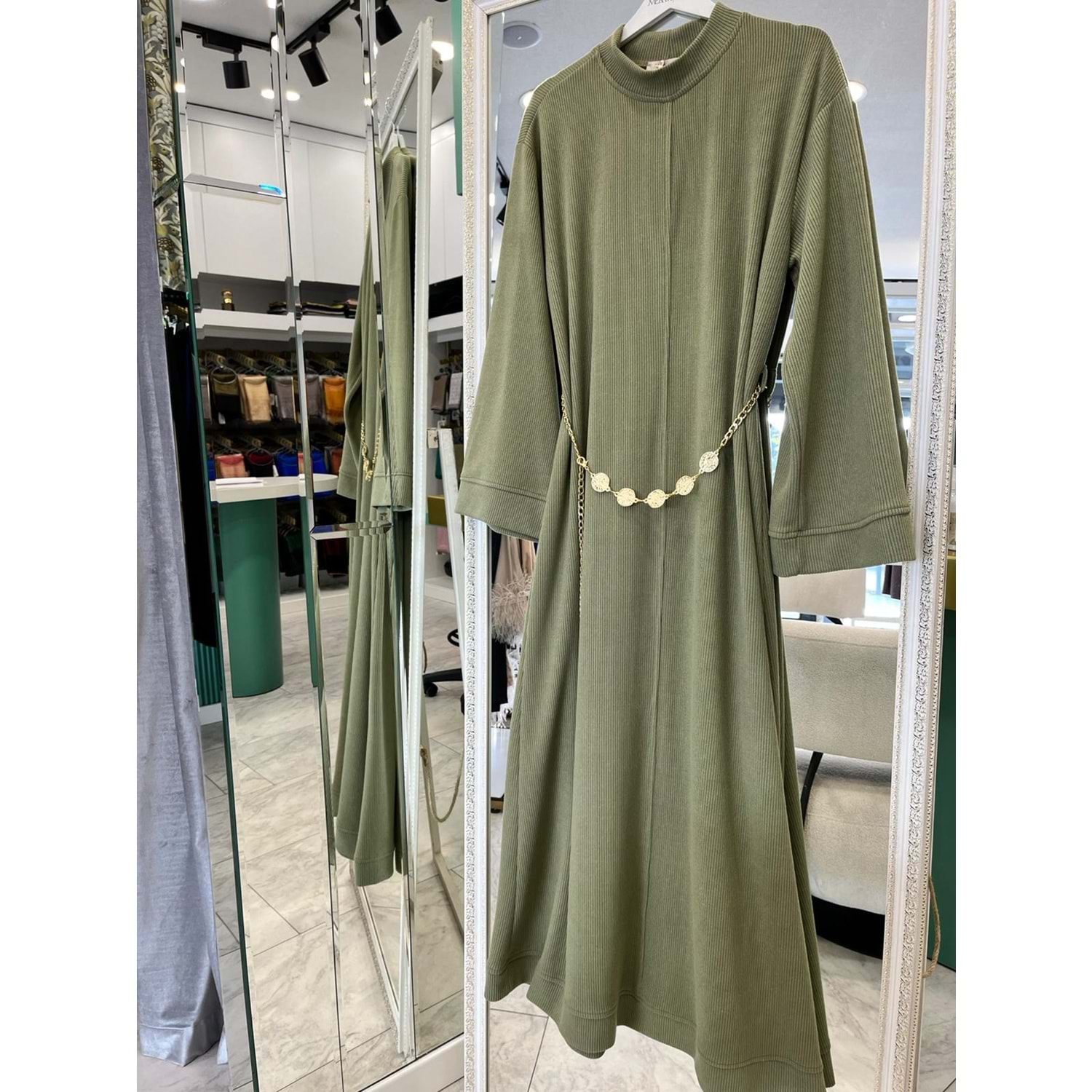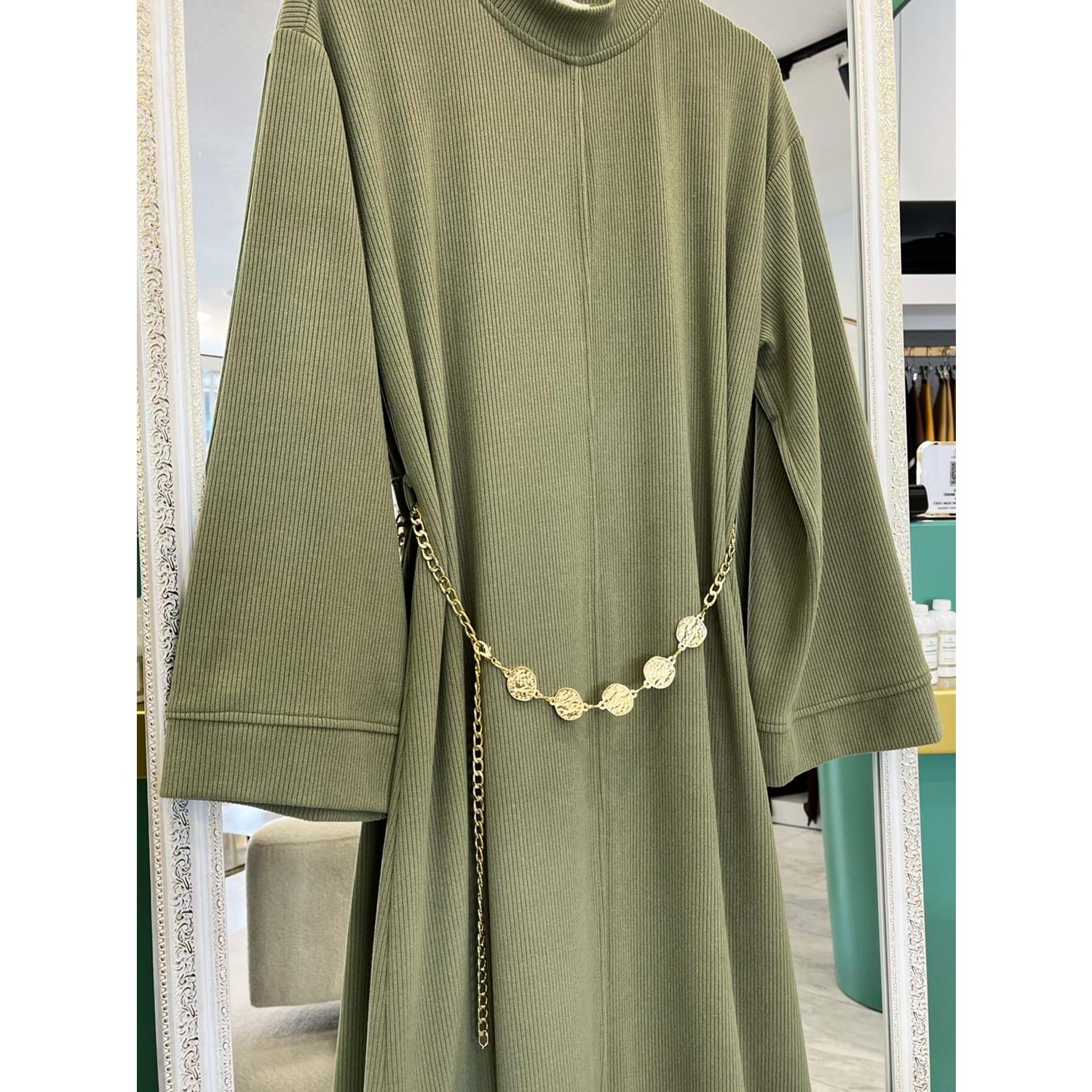 VATKATEX FİTİLLİ TRİKO ELBİSE - MİNT YEŞİLİ - 42