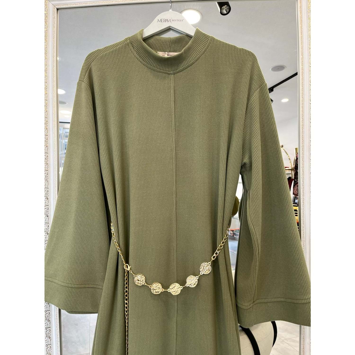 VATKATEX FİTİLLİ TRİKO ELBİSE - MİNT YEŞİLİ - 46
