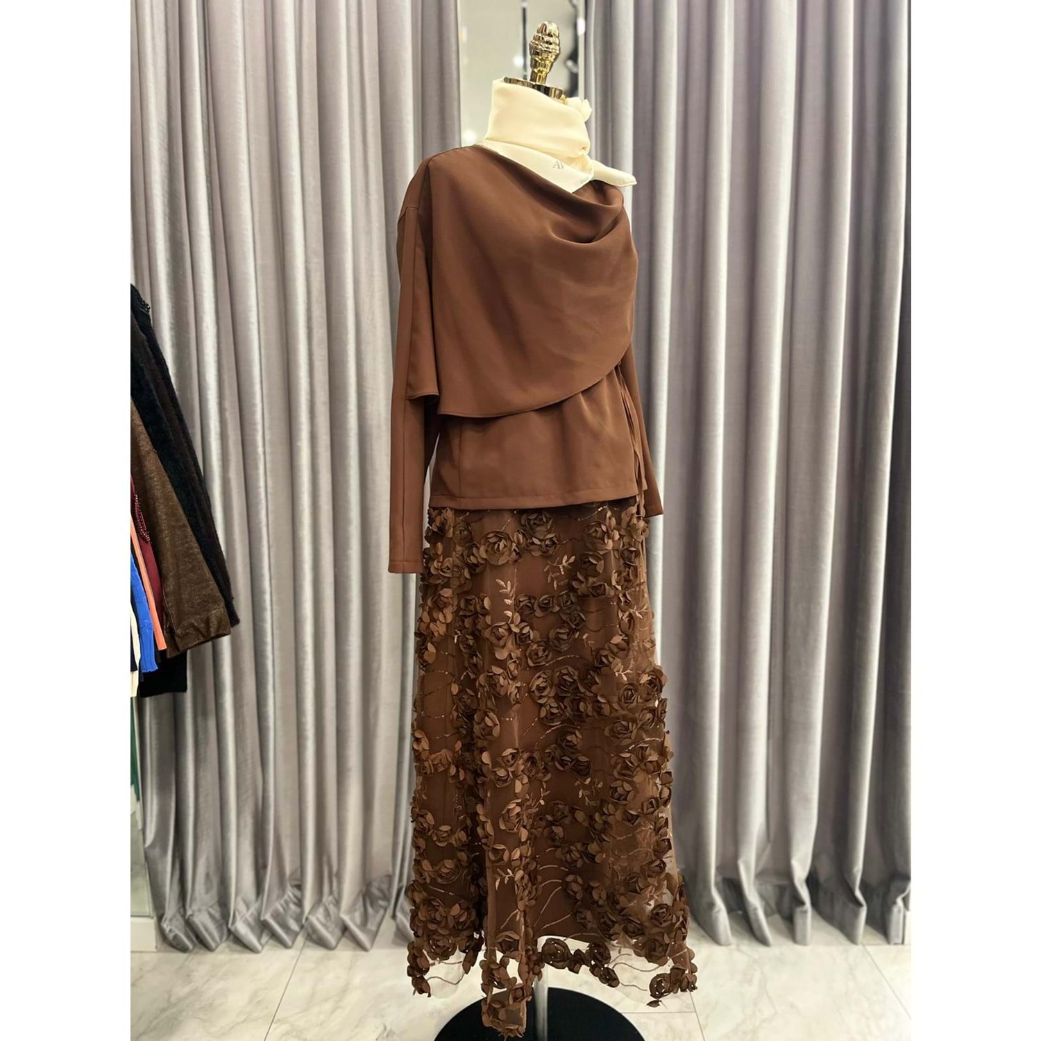 VATKATEX GÜLLÜ ETEKLİ TAKIM - KAHVERENGİ - 44