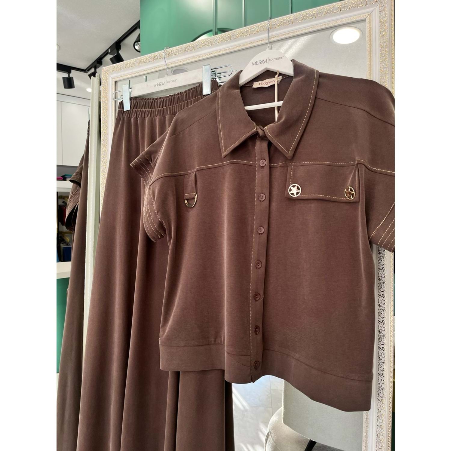 VATKATEX LİYOSEL CUPRA YELEKLİ ETEKLİ TAKIM - AÇIK KAHVE - 38