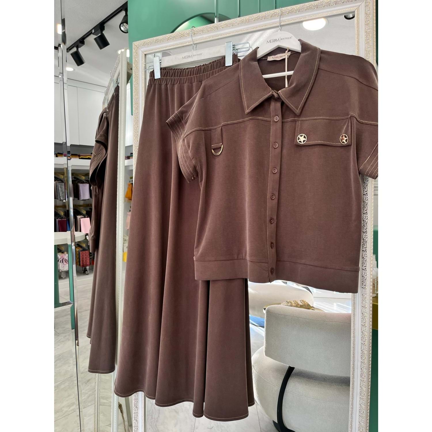 VATKATEX LİYOSEL CUPRA YELEKLİ ETEKLİ TAKIM - AÇIK KAHVE - 40