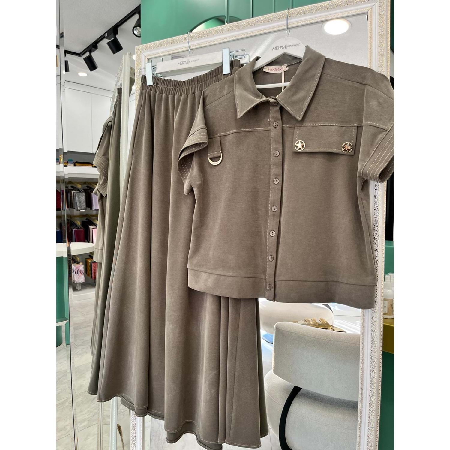 VATKATEX LİYOSEL CUPRA YELEKLİ ETEKLİ TAKIM - HAKİ - 38