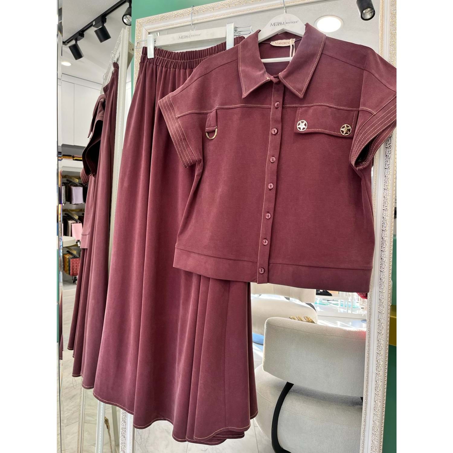 VATKATEX LİYOSEL CUPRA YELEKLİ ETEKLİ TAKIM - MÜRDÜM - 46