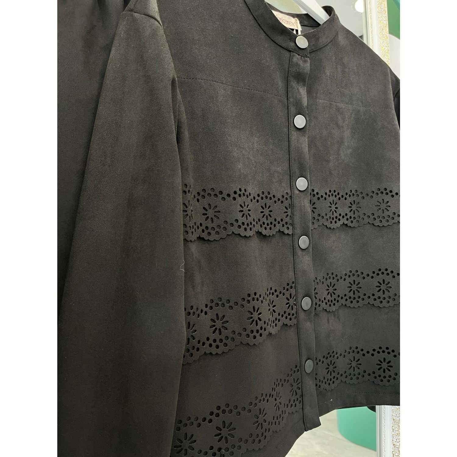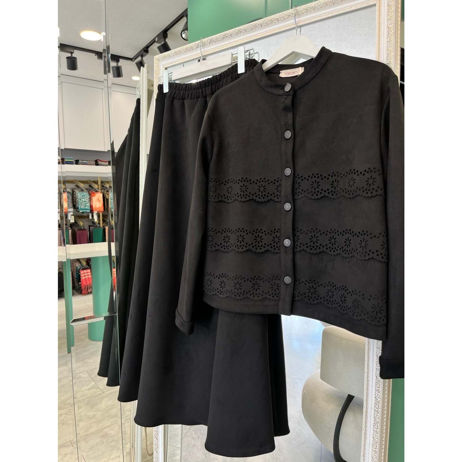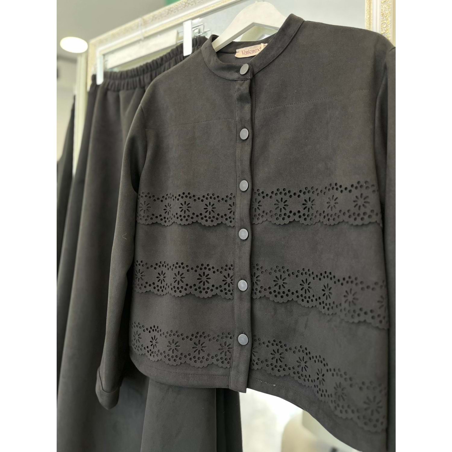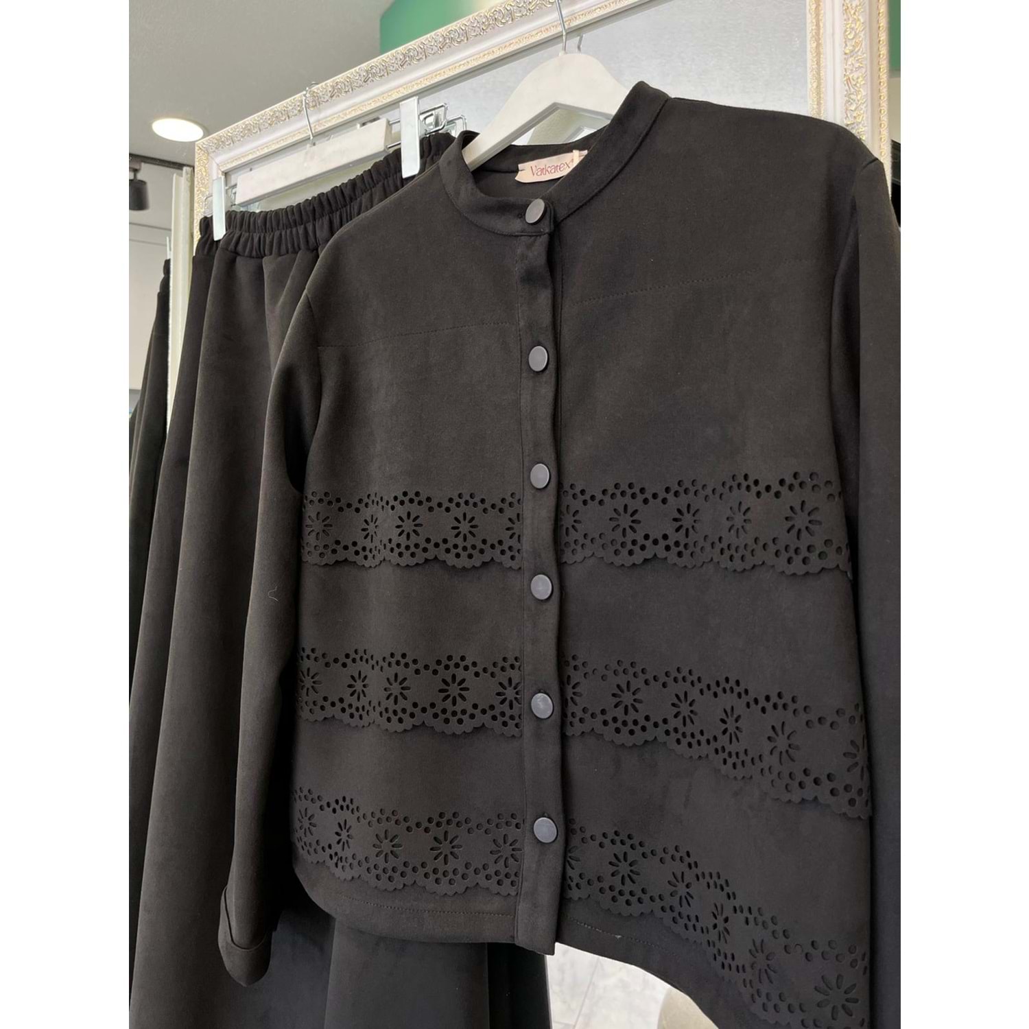 VATKATEX SÜET ETEKLİ TAKIM LAZER KESİM - SİYAH - 42