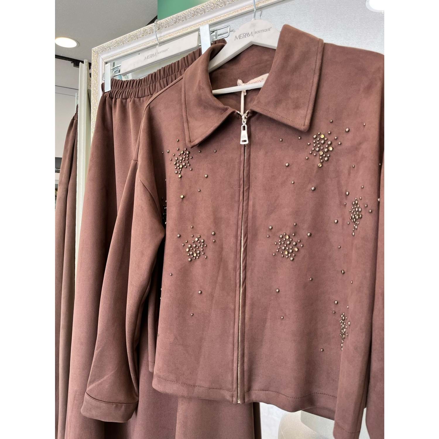 VATKATEX SÜET ETEKLİ TAKIM TAŞLI