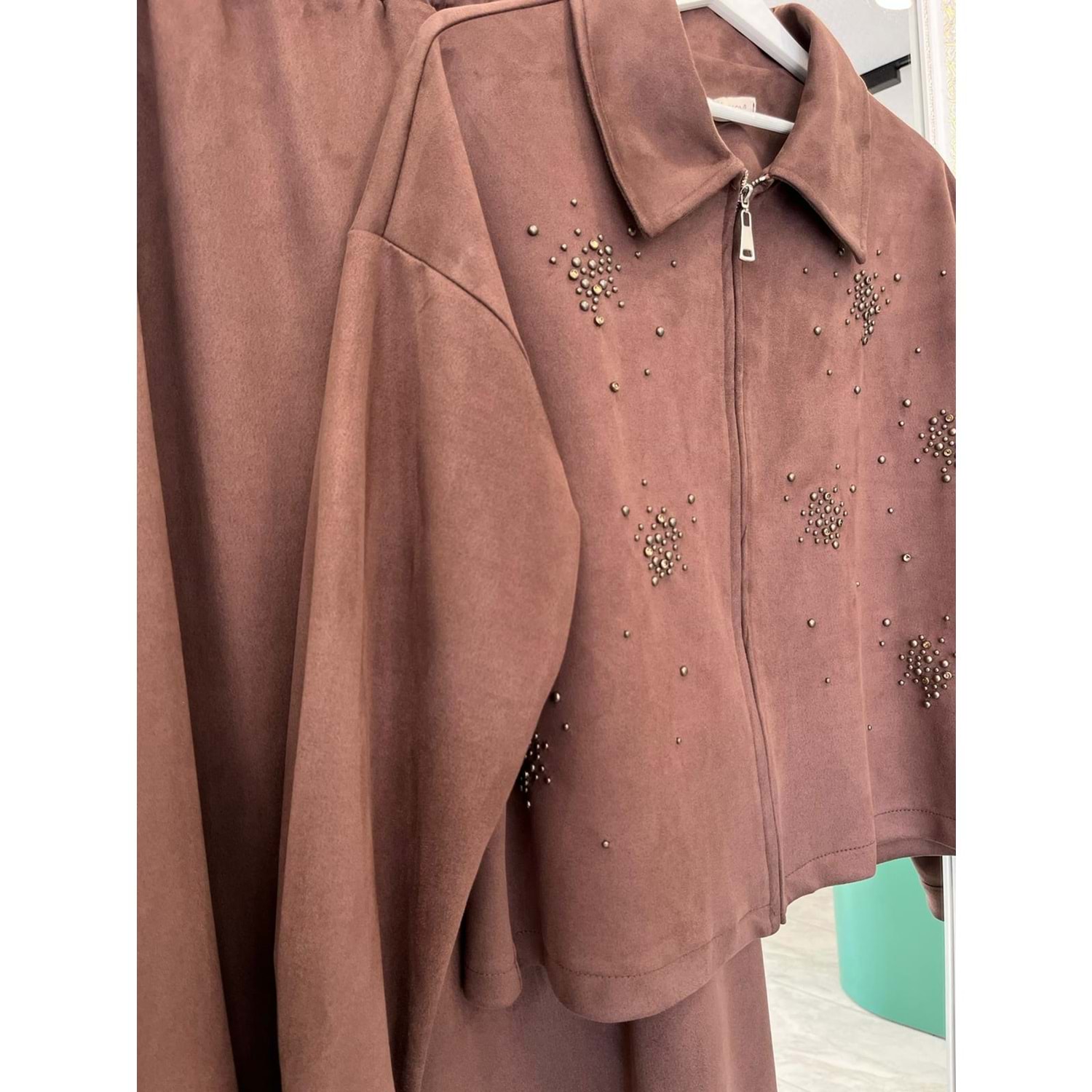 VATKATEX SÜET ETEKLİ TAKIM TAŞLI - KAHVERENGİ - 46