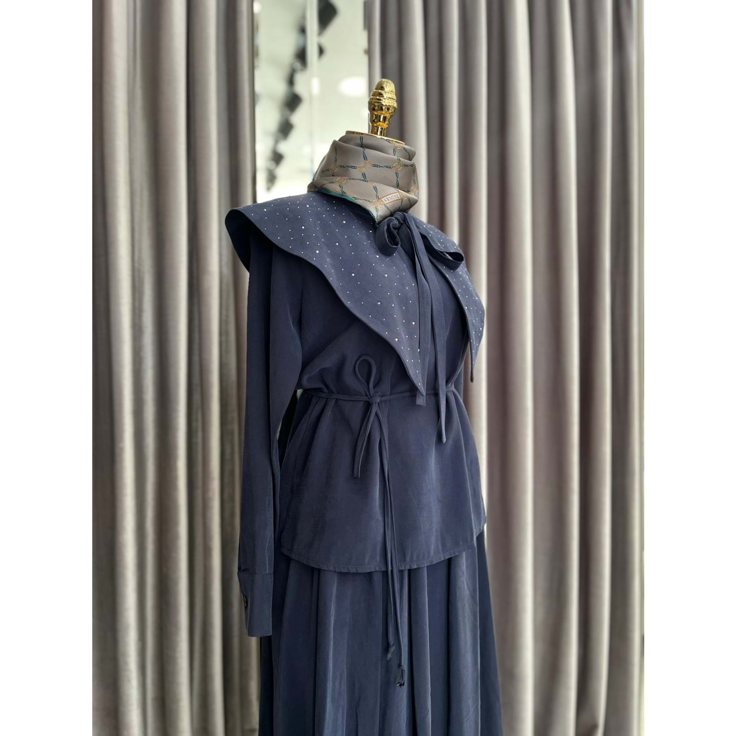 VATKATEX TAŞLI YAKA ETEKLİ TAKIM - LACİVERT - 40