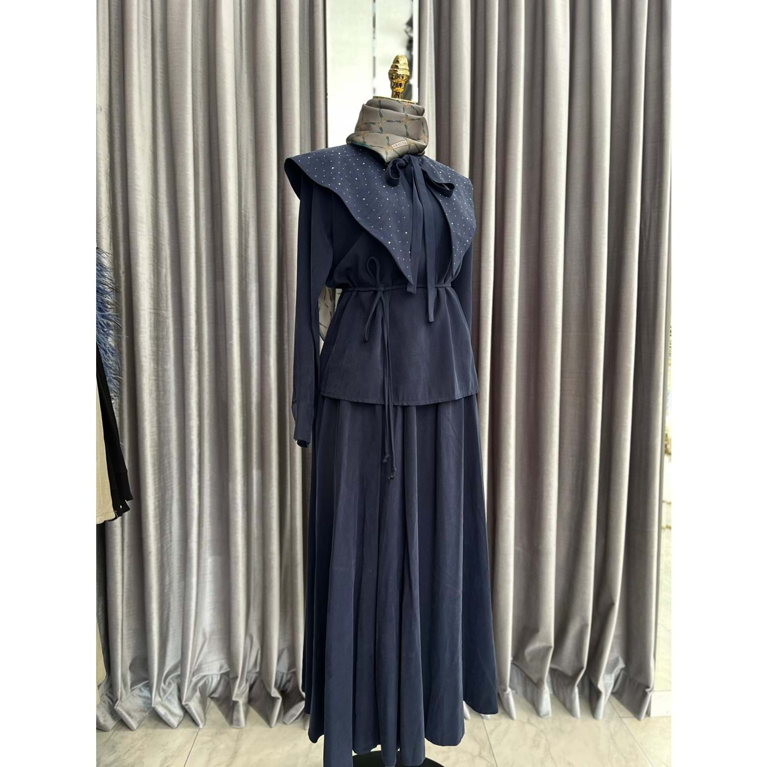 VATKATEX TAŞLI YAKA ETEKLİ TAKIM - LACİVERT - 46