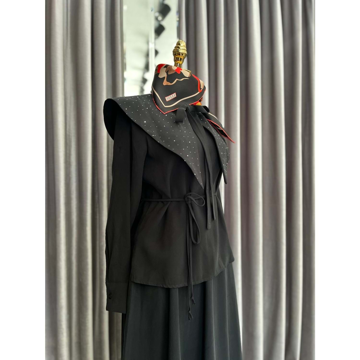 VATKATEX TAŞLI YAKA ETEKLİ TAKIM - SİYAH - 44