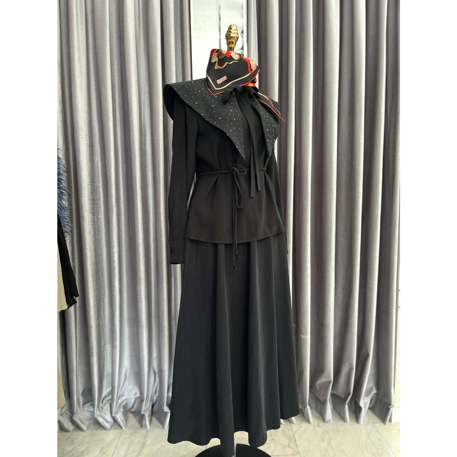 VATKATEX TAŞLI YAKA ETEKLİ TAKIM - SİYAH - 46