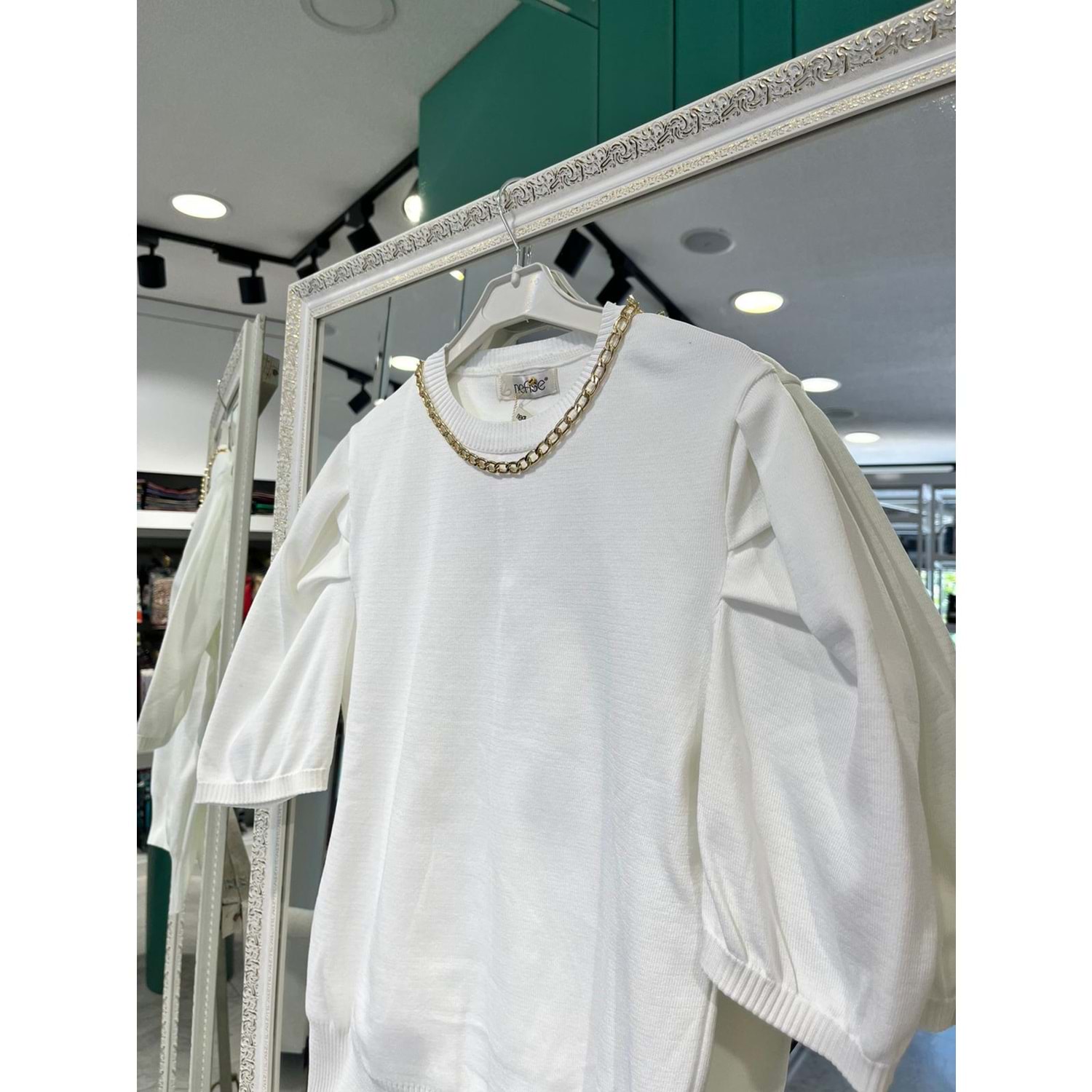 NEFİSE KISA KOLLU TRİKO İÇLİK ZİNCİR DETAYLI - BEYAZ - STANDART