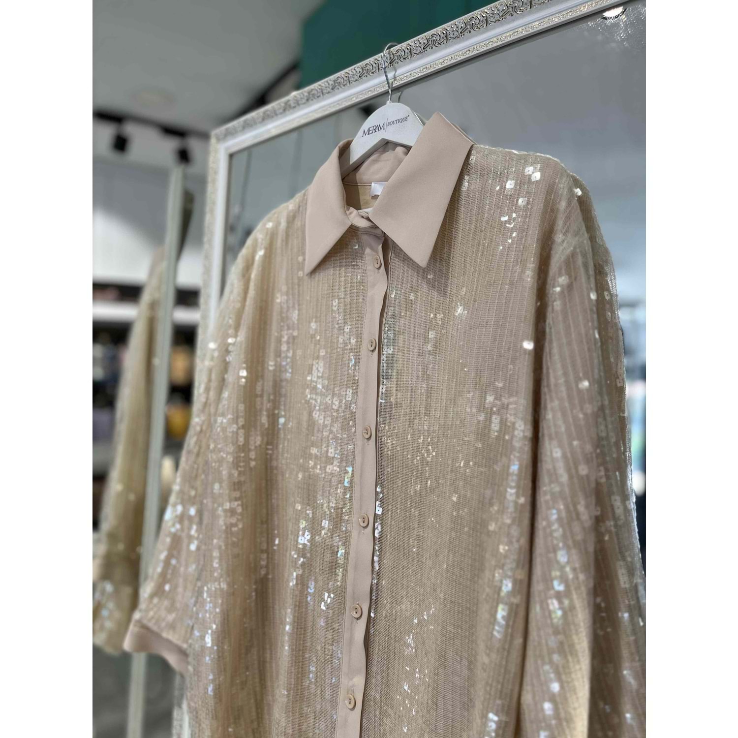 LİSA PUL PAYET GÖMLEK 3092 - BEJ - 2