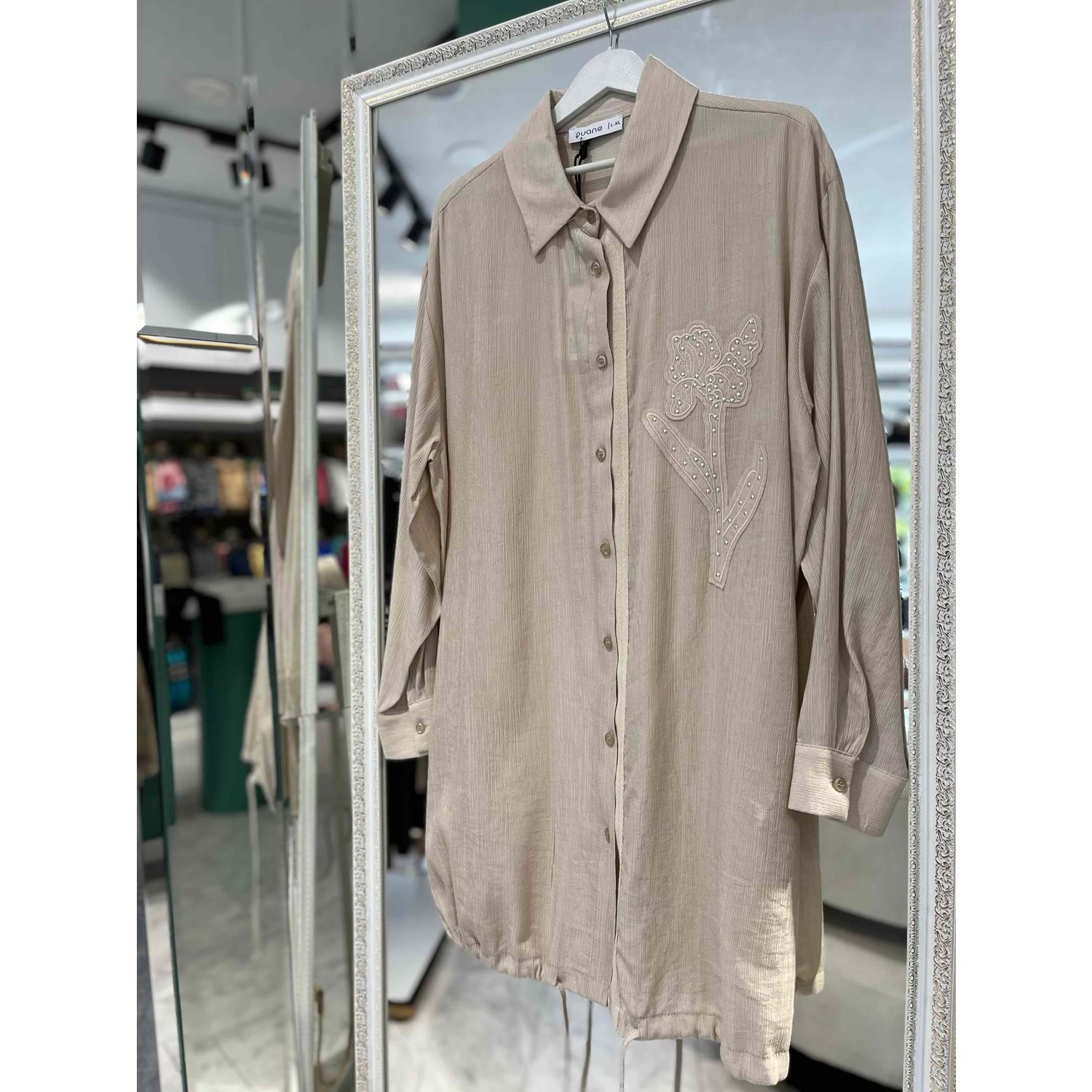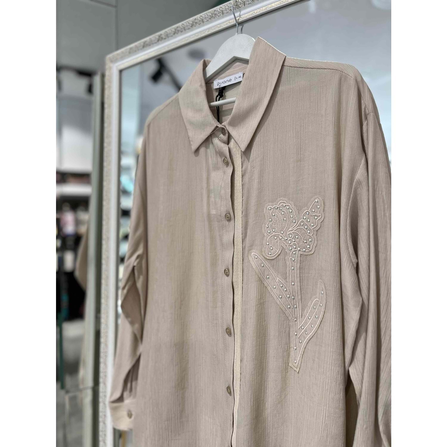 PUANE GÖMLEK GÜL İŞLEMELİ 10519 - BEJ - 1