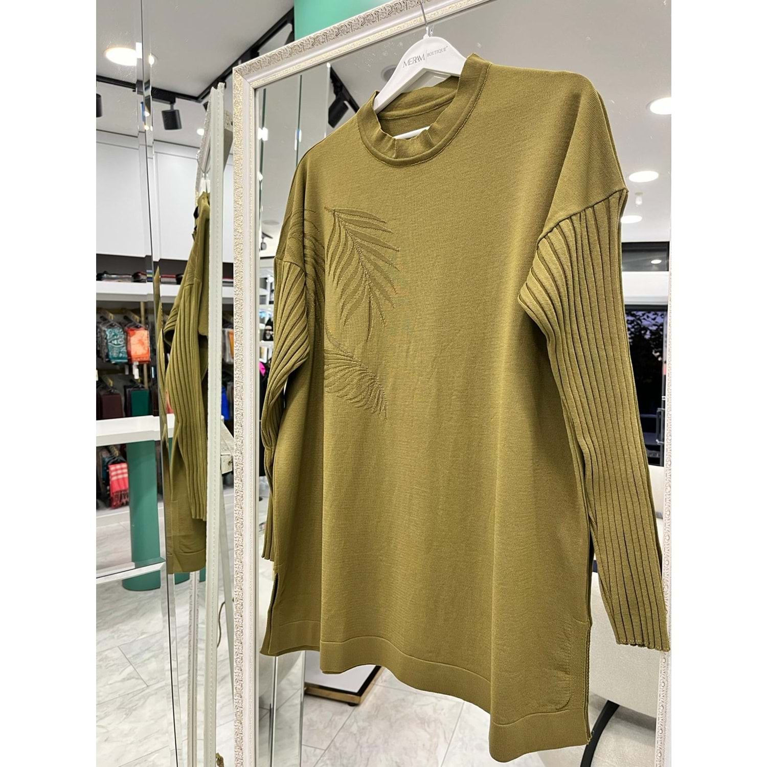 ADN PALMİYE MERSERİZE TUNİK - YAĞ YEŞİLİ - 1