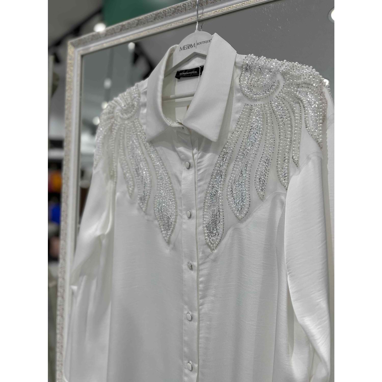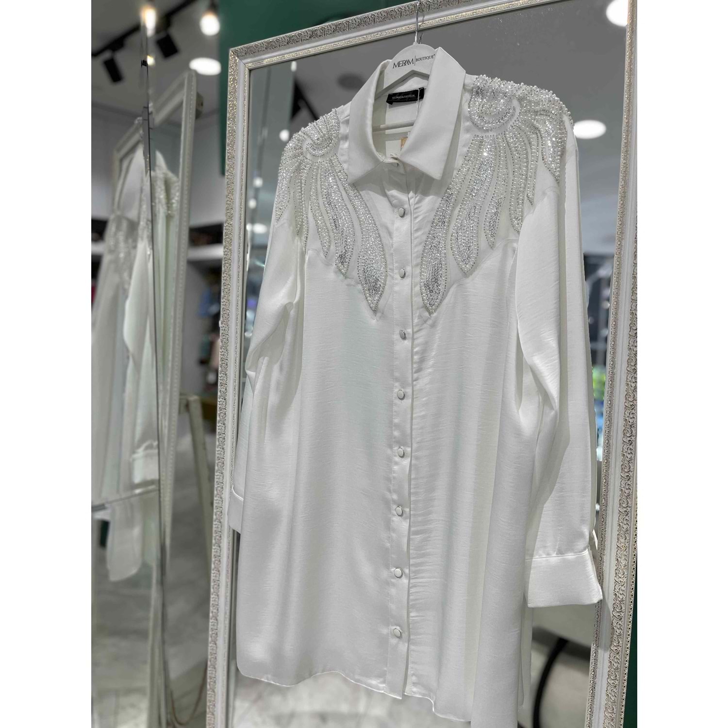 SELİNADA SATEN TUNİK ÇİFT OMUZ BONCUKLU 3155 - BEYAZ - 42