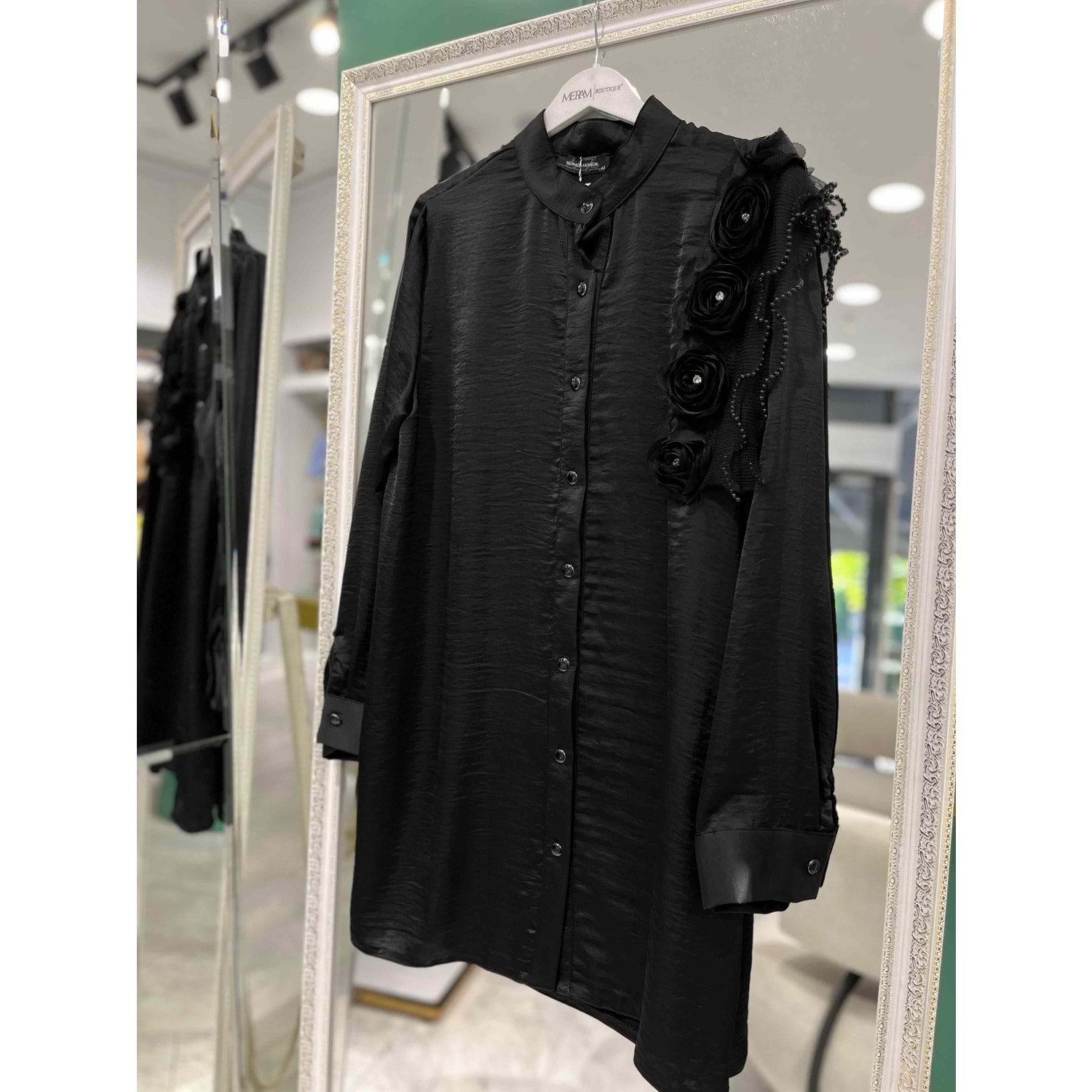 SELİNADA SATEN TUNİK GÜL DETAYLI 3150 - SİYAH - 38