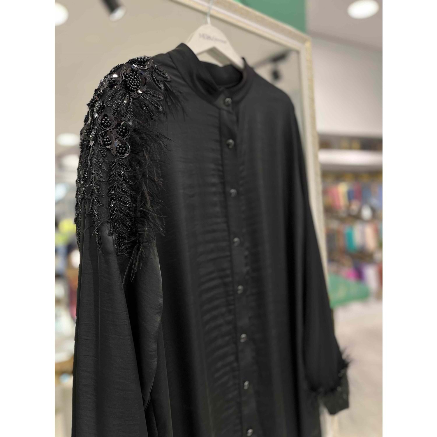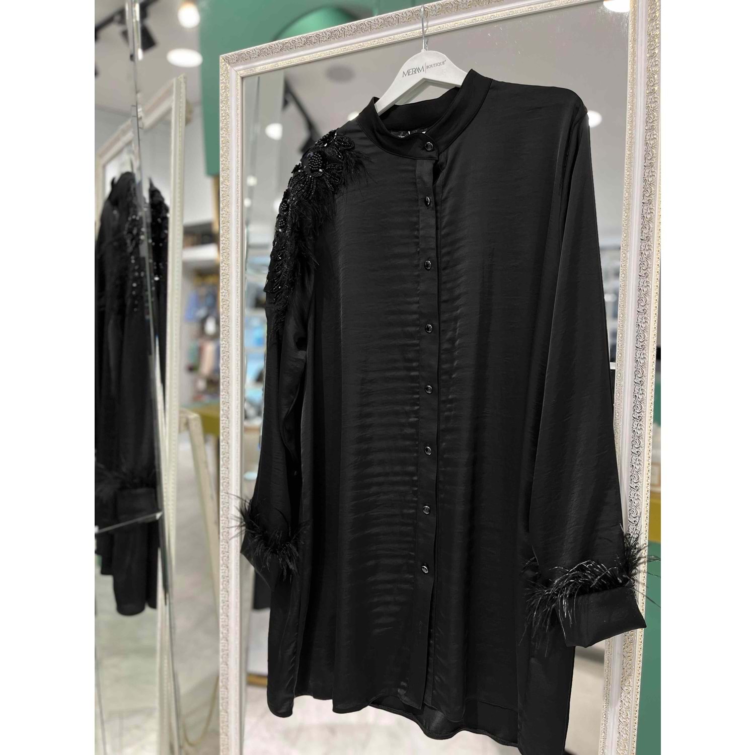 SELİNADA SATEN TUNİK OMUZ İŞLEMELİ 3157 - SİYAH - 44